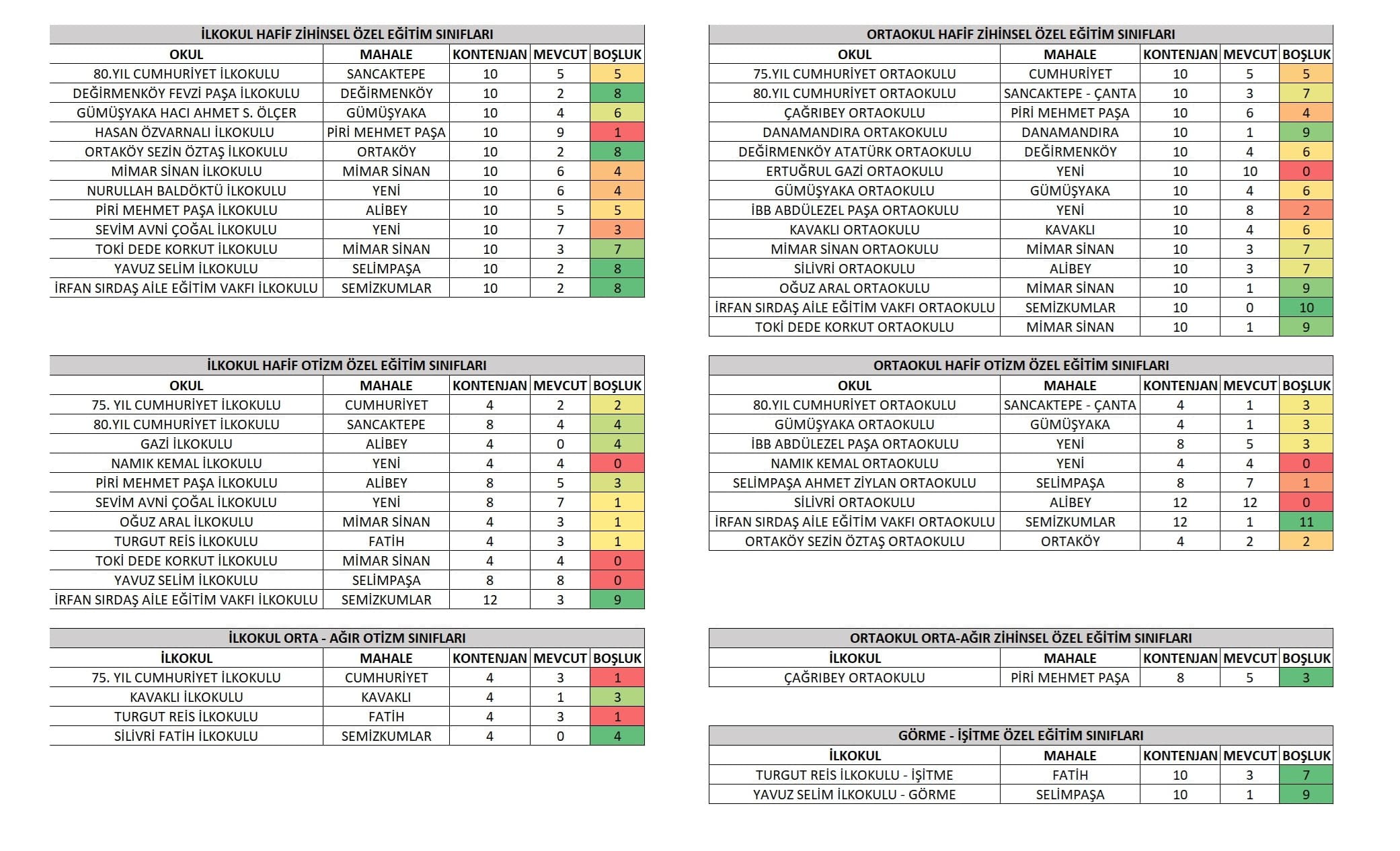 - Özel Eğitim Haftalık Ders Çizelgeleri